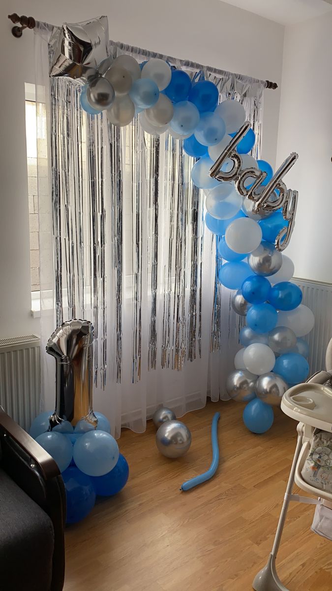 9 recenzii pentru Arcada baloane Baby, culori albastru, alb, argintiu
