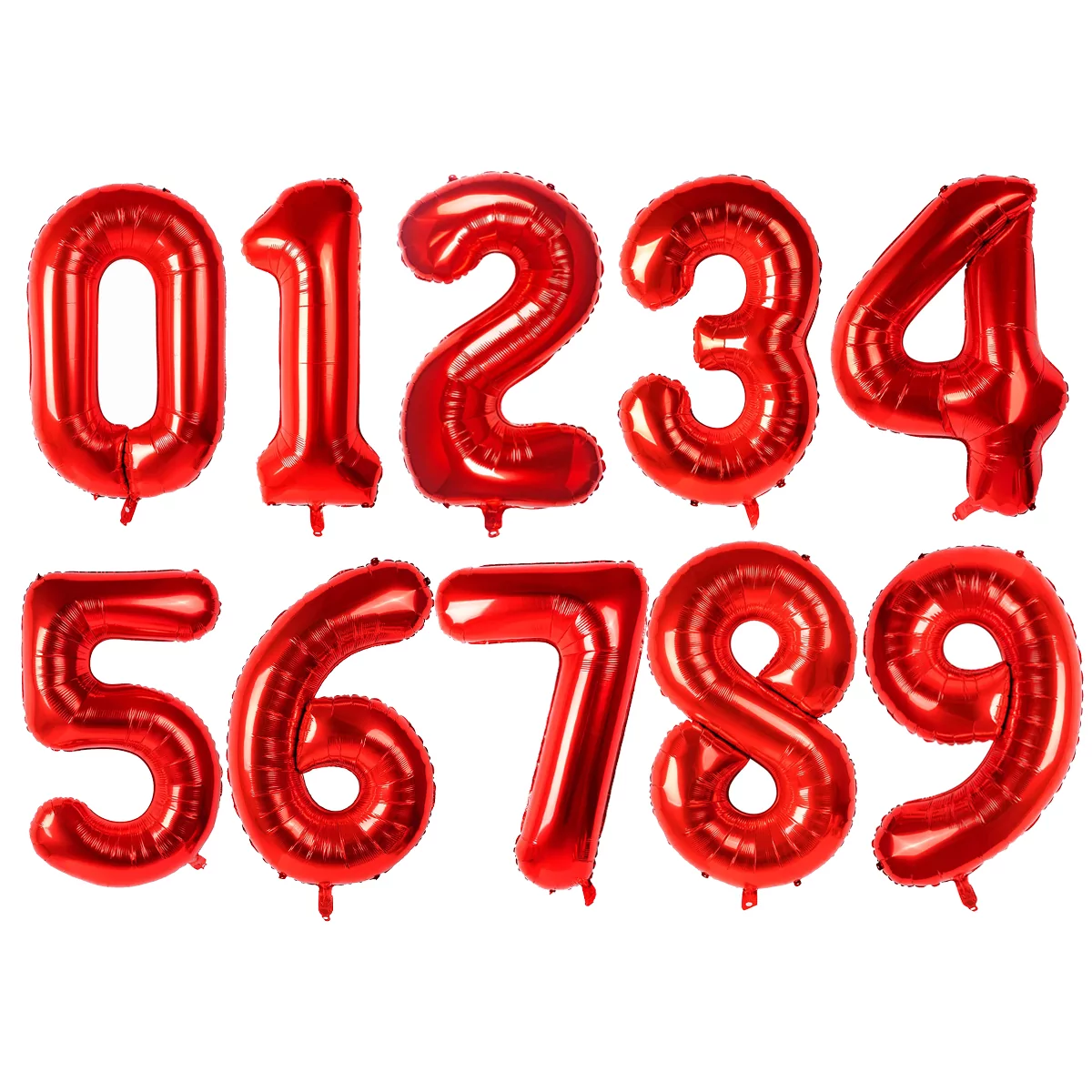 Baloane folie in forma de cifre 1, 2, 3, 4, 5, 6, 7, 8, 9, 0, Rosu, 100 cm