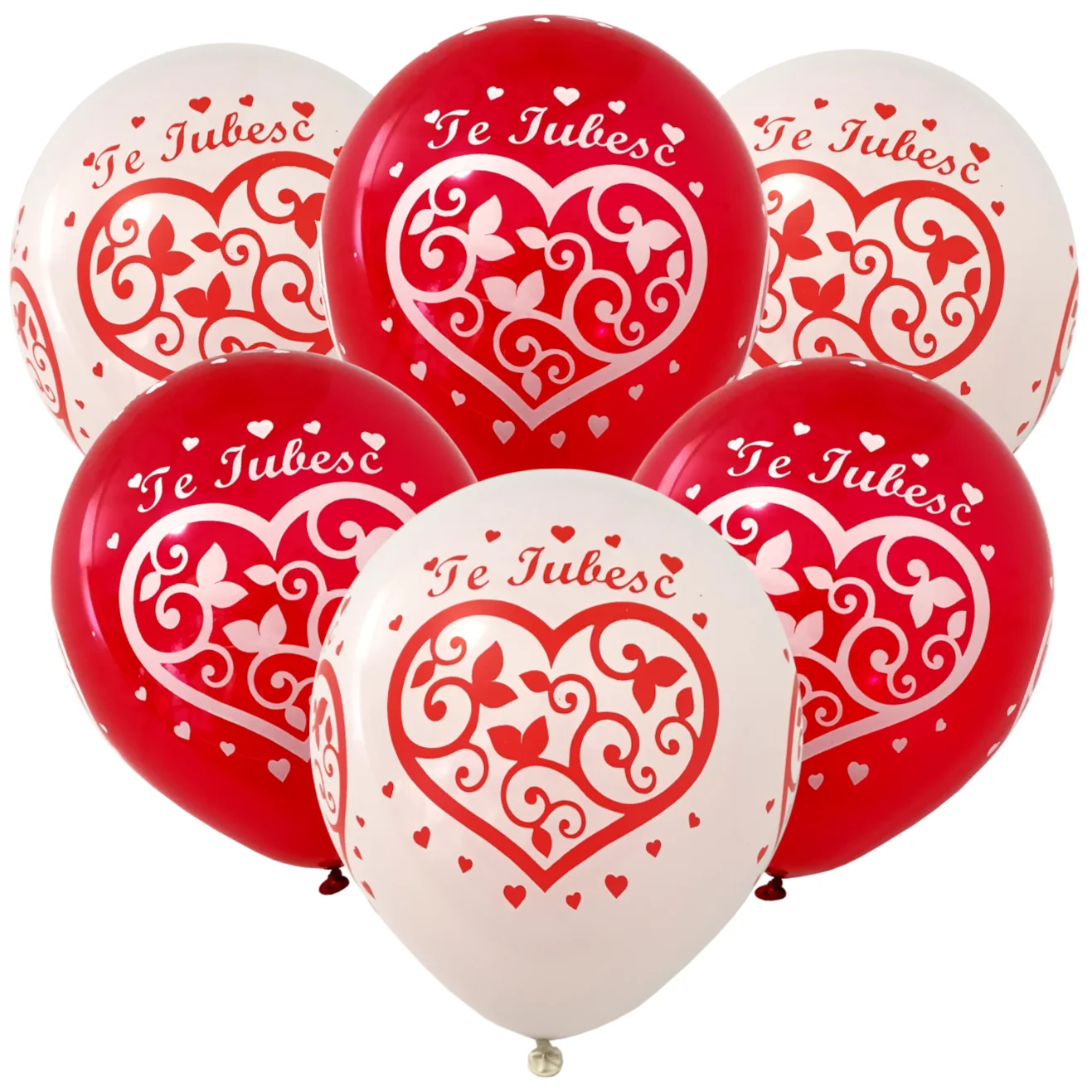 Baloane latex imprimate cu inimioare si mesaj Te Iubesc