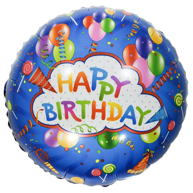 Balon folie Happy Birthday, rotund, 45 cm