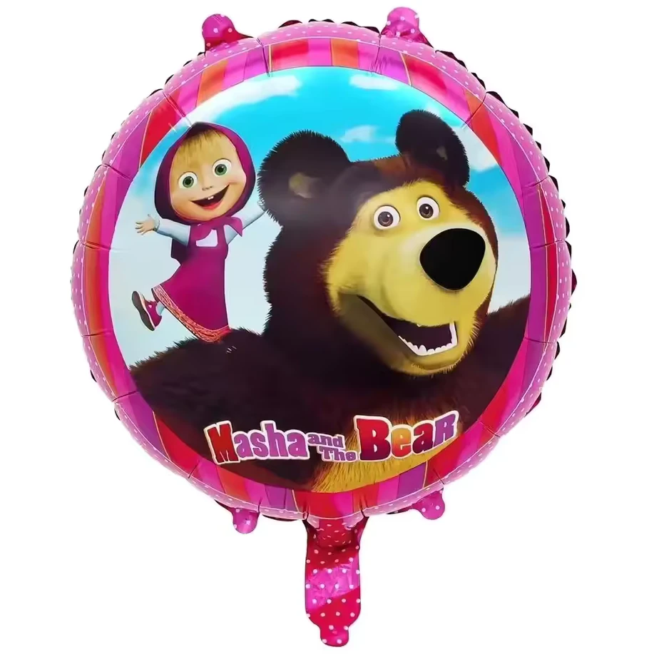 Balon folie Mashsa si Ursul, Roz cu Bulinute, Rotund, 45 cm