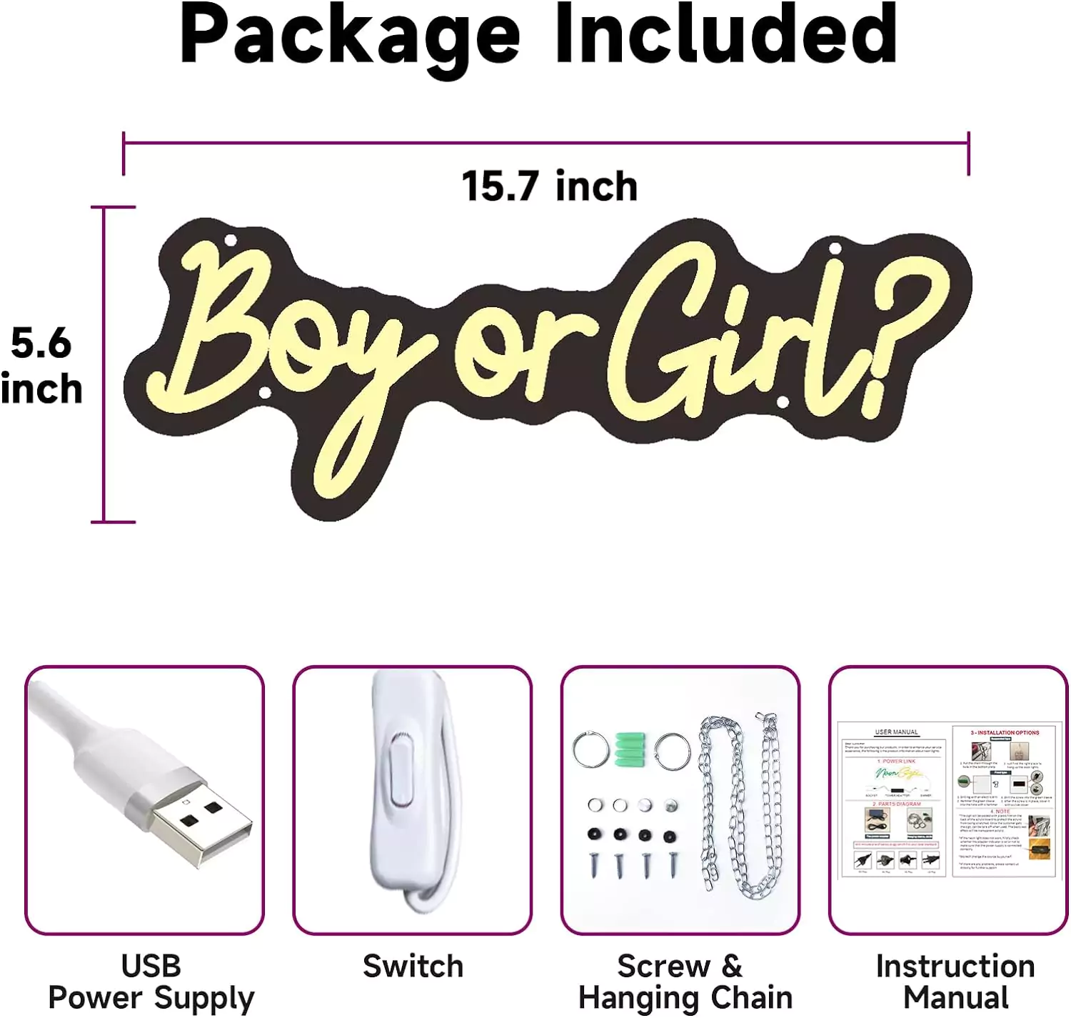 Banner luminos Led Neon BOY OR GIRL, Gender Reveal, fundal transparent, 55 x 18 cm