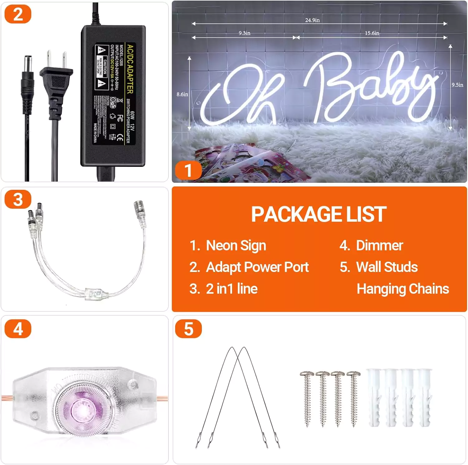 Banner luminos Led Neon OH BABY, fundal transparent, 55 x 18 cm