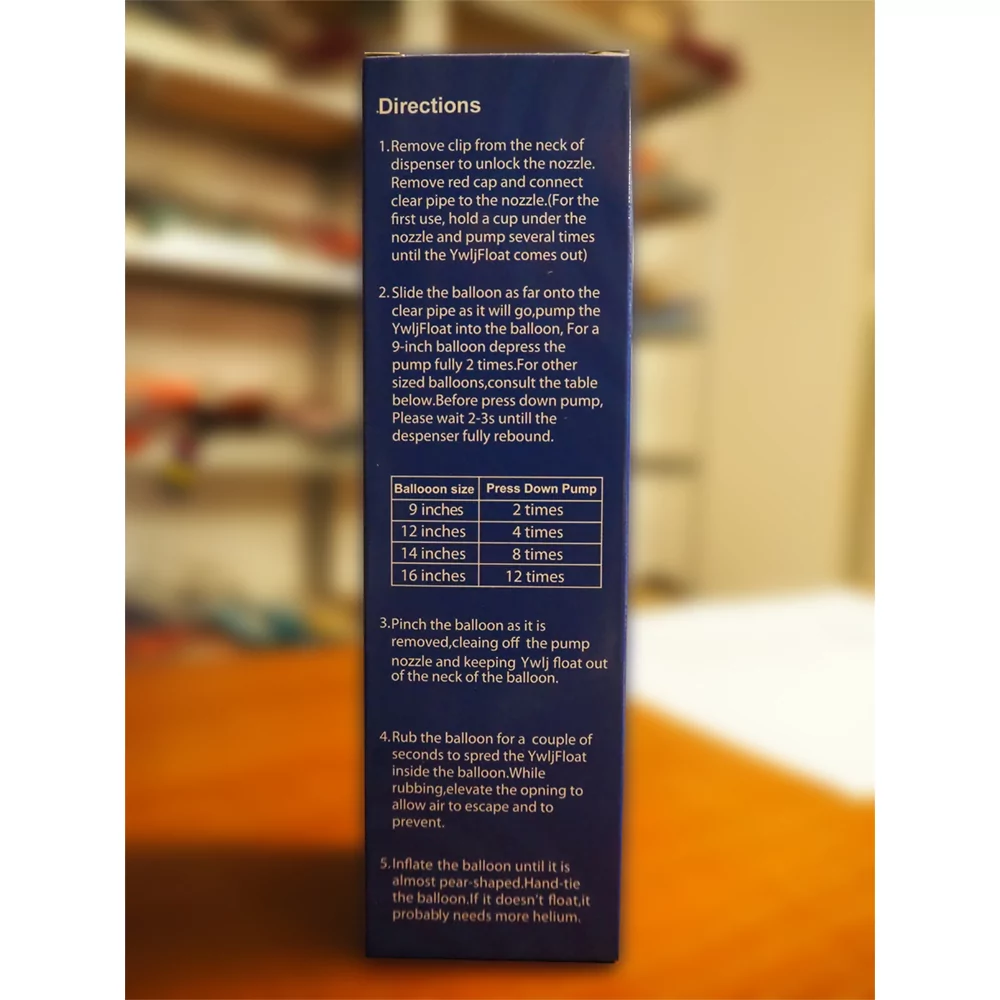 Dispenserul cu gel are volum de 100 ml si este utilizat strict pentru baloanele din latex umflate cu heliu. Modalitatea de umflare cu heliu a baloanelor asigura plutirea baloanelor in timpul petrecerii.