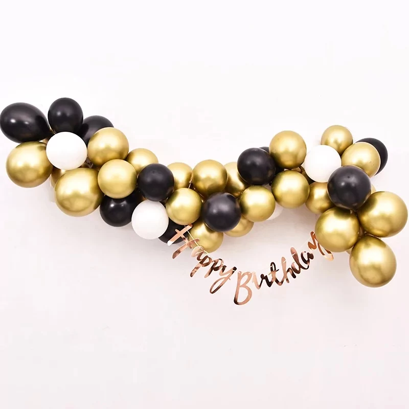- Ghirlanda cu 40 de baloane in culori auriu cromat, negru si alb