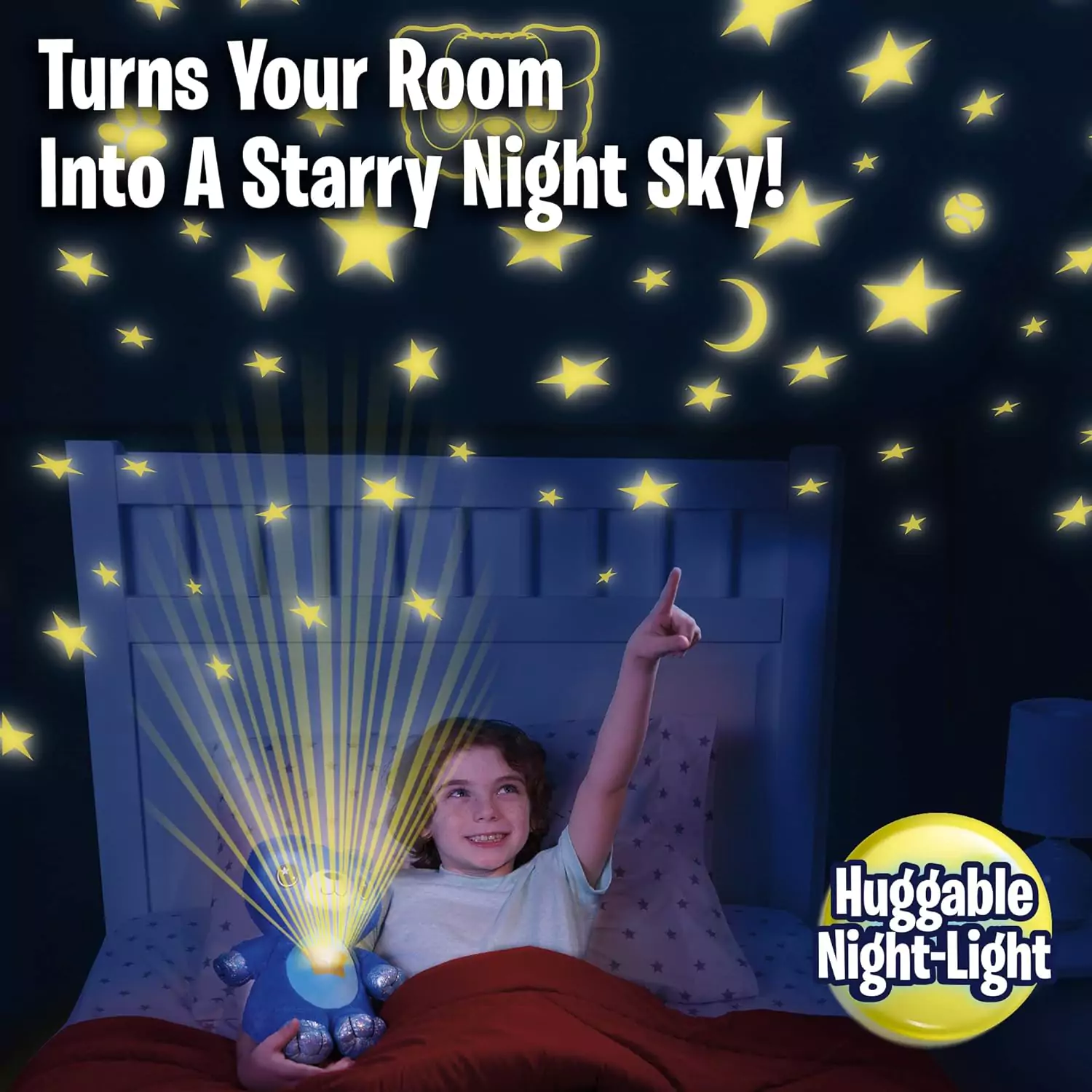 - Modele magice în mișcare: ursulețul de plus Star Belly Dream Lites este atat o veioza de noapte cu proiecție, cat si o jucarie moale și drăgălașă, pentru copii, Creează stele strălucitoare și forme distractive care plutesc peste pereți și tavan; ajută la crearea unui mediu calm și liniștitor pentru somn