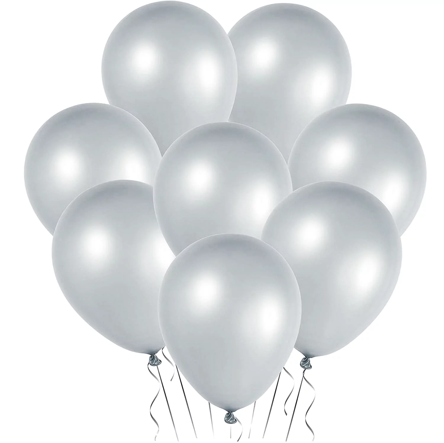 Set 10 baloane latex, Argintiu, perlate, de 30 cm.