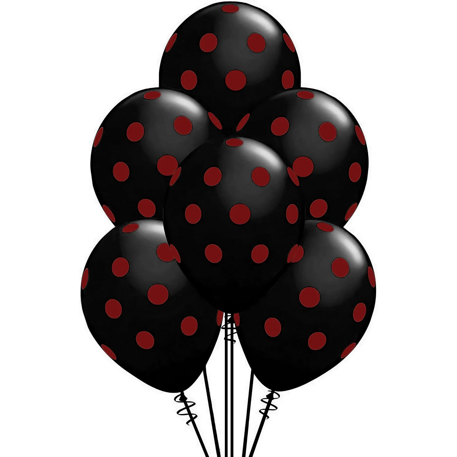 Set 10 baloane latex cu buline, negru cu buline rosii, 30 cm