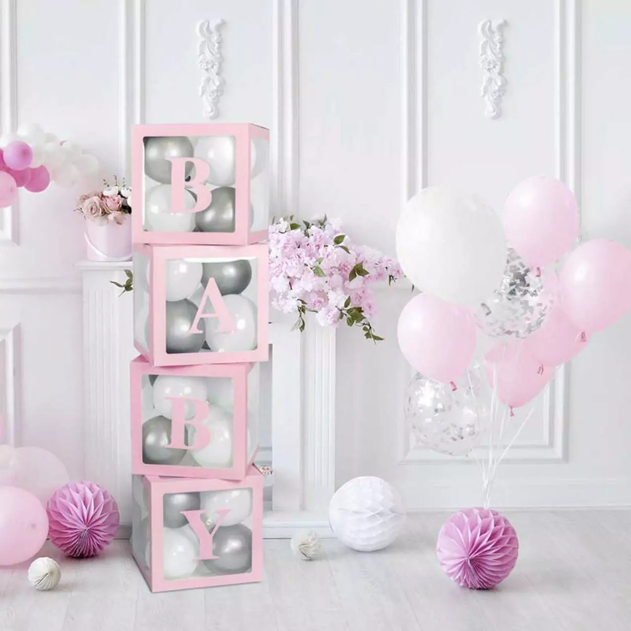 Set 4 cutii culoare roz, Baby ce pot fi folosite pentru diverse aranjamente cu baloane.