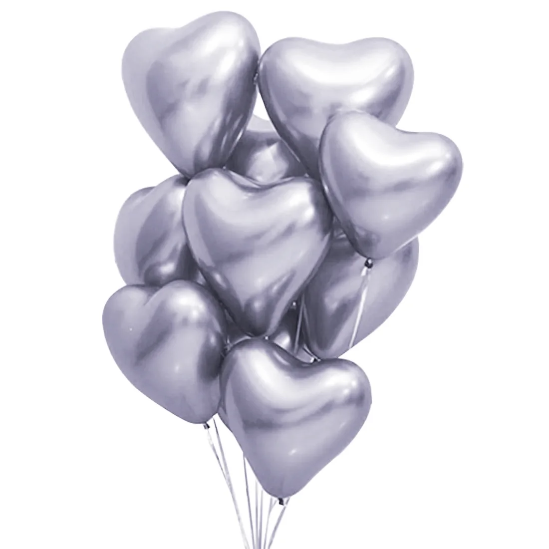 Set 6 baloane latex in forma de inima, Argintiu, cromate, 30 cm