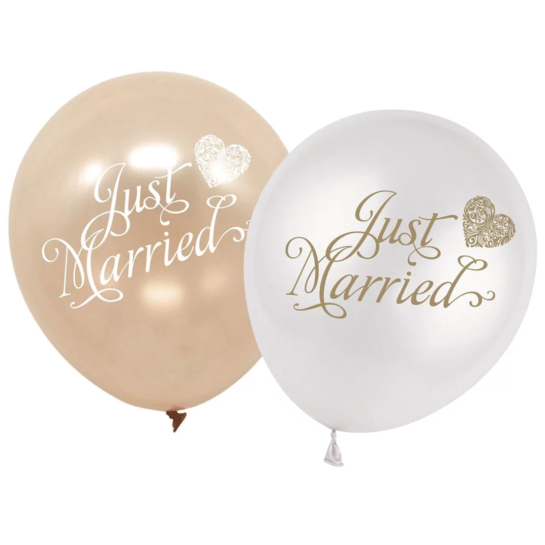 Set 6 baloane latex Nunta, cu inimioare alb – rose gold, 30 cm