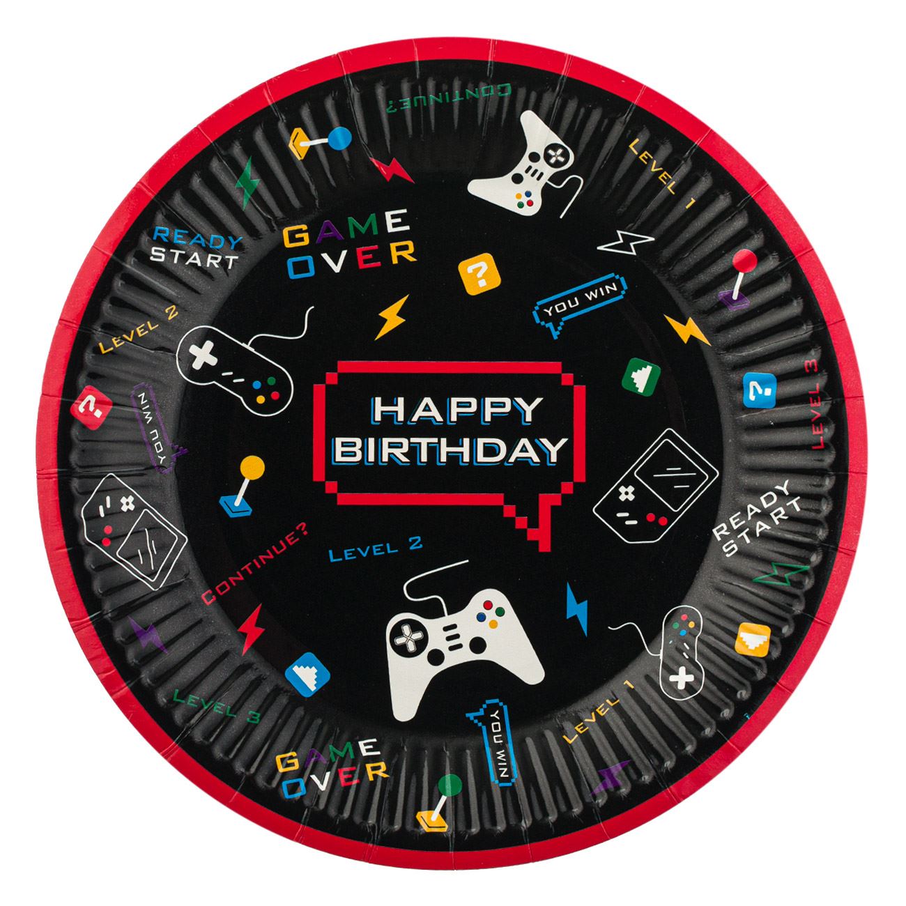 Set 6 farfurii Happy Birthday, Game Party, 18 cm
