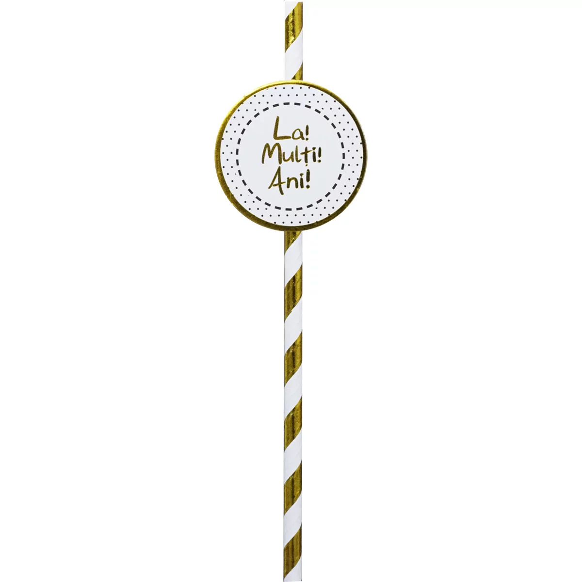 Set 6 paie bauturi La Multi Ani, auriu-alb