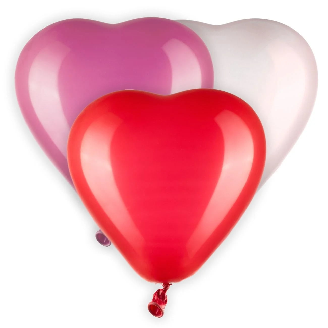 Set aranjament 10 baloane latex inimioara, rosu, alb, roz, 28 cm