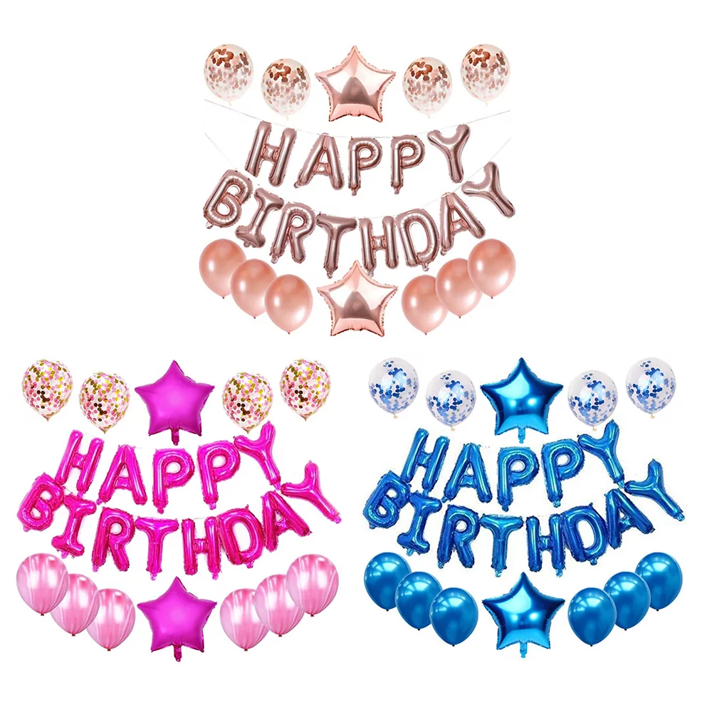 Set aranjament 25 baloane folie si latex Happy Birthday