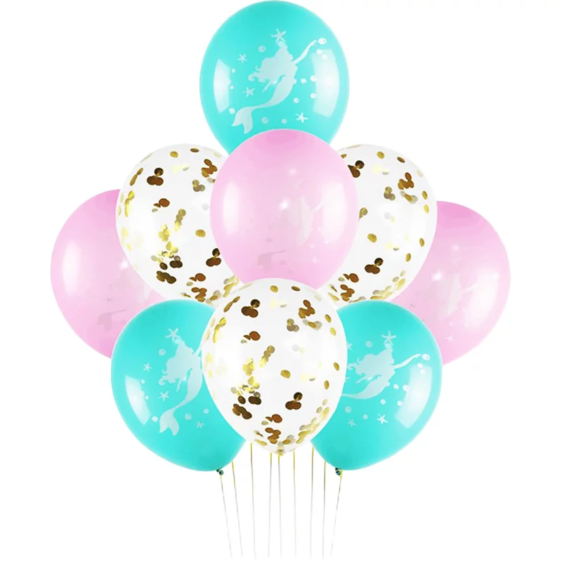 Set aranjament 9 baloane latex, model Sirena, roz-turcoaz, 30 cm