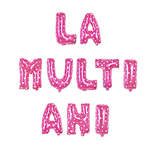 Set aranjament baloane litere La Multi Ani, roz cu inimioare
