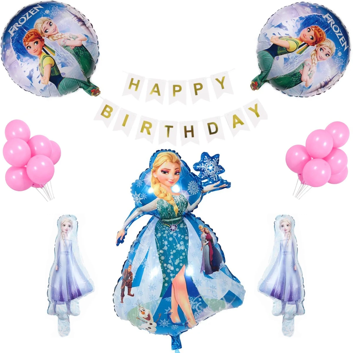 Set aranjament bundle 25 baloane folie si latex Frozen cu Ghirlanda Happy Birthday