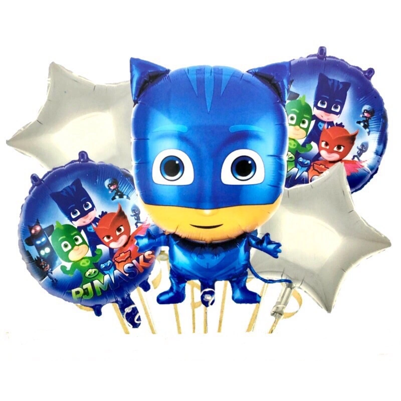 Set aranjament bundle 5 baloane folie Eroi in Pijamale cu stelute argintii