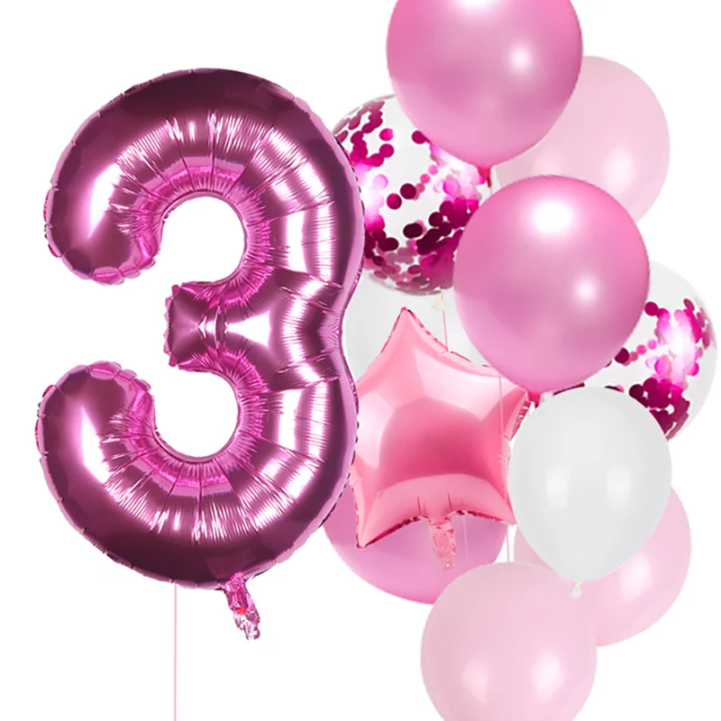 – 3 baloane latex de culoare roz inchis, cu efect perlat / sidefat, de 30 cm
