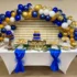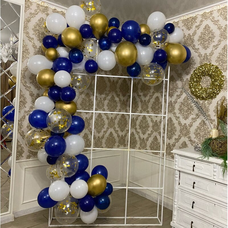 Set arcada baloane cu 90 de baloane in nuante de albastru, auriu si alb, cu accesorii