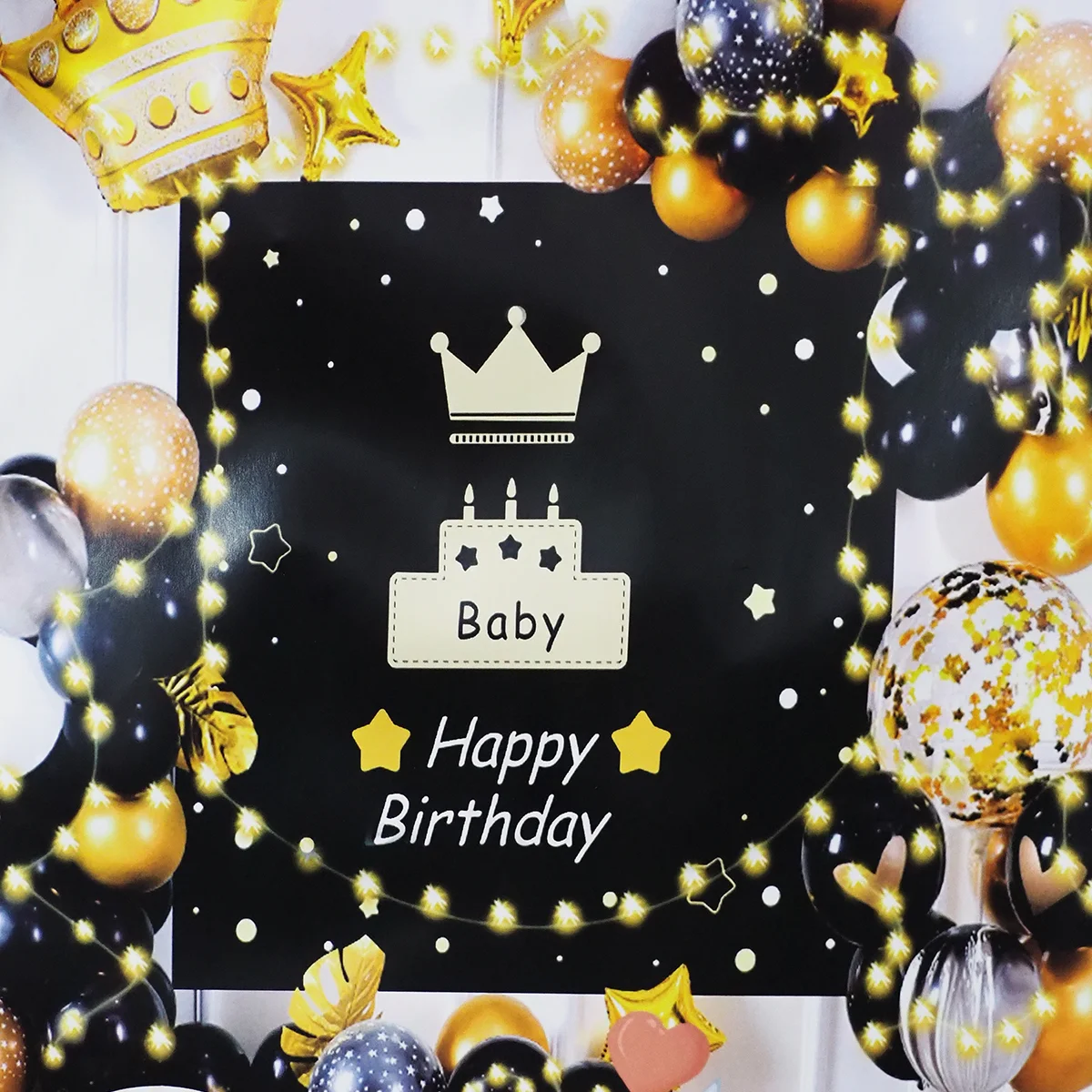 - 1x banner material textil negru cu inscriptia Happy Birthday dimensiunea 60×60 cm