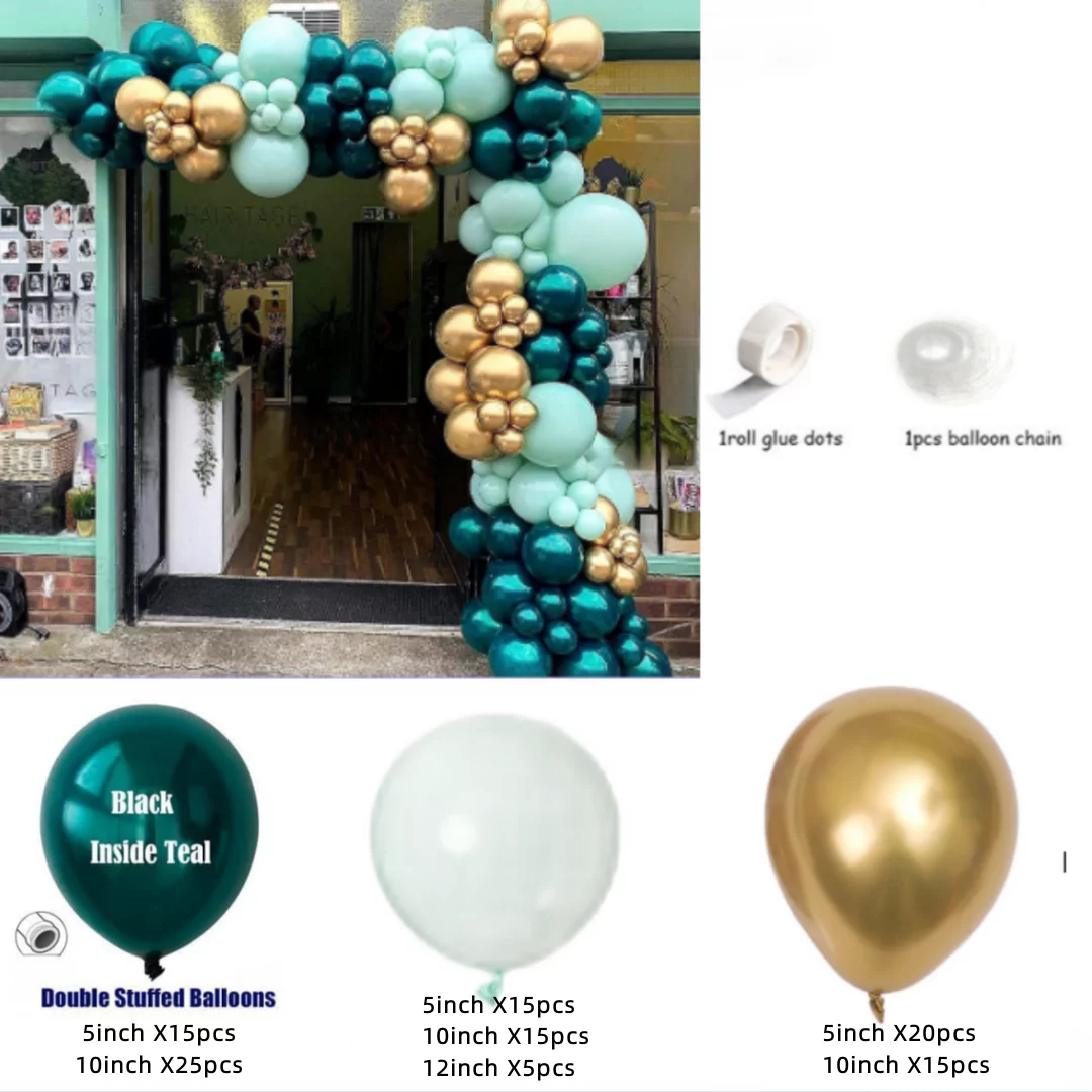 - 66 baloane latex ovale dimensiunea 25 cm in culori Turcoaz,Verde si Auriu