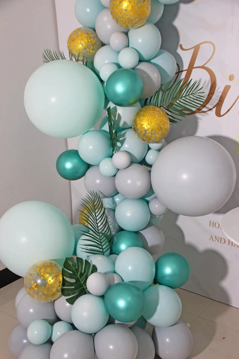 Set arcada baloane pentru Botez, in nuante de albastru macarons, turcoaz, auriu