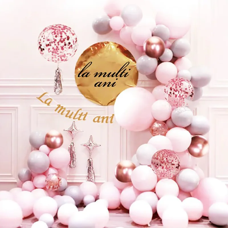 Set arcada baloane roz, cu banner si ghirlanda La Multi Ani