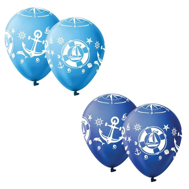 - 3 baloane latex ovale imprimeu Ancora dimensiunea 30 cm culoarea albastru deschis