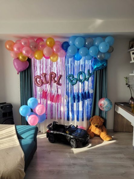 - 45 baloane latex dimensiune 25 cm in culori roz si albastru auriu