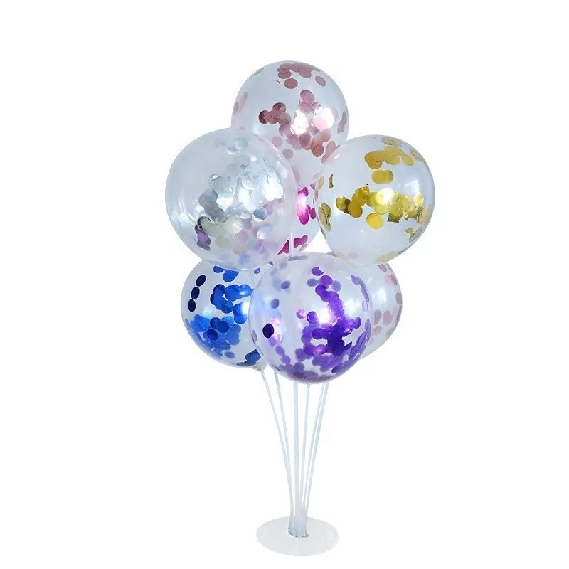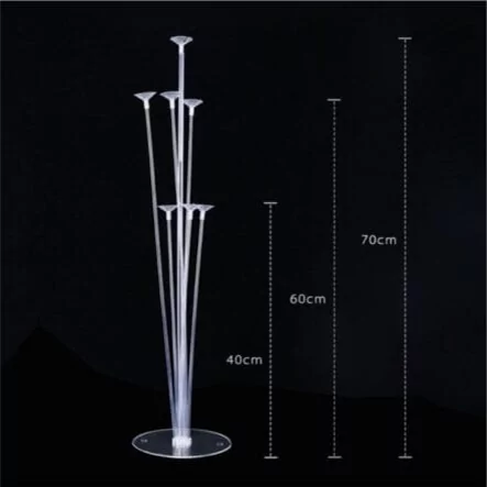 Articole din componenta suportului: 1 bat central de 65 cm pentru balon tip folie, 3 bete de 54.5 cm inaltime pentru baloane latex, 3 bete mijlocii de 35.5 cm inaltime pentru baloane latex, picior/baza de 17 cm in diametru.