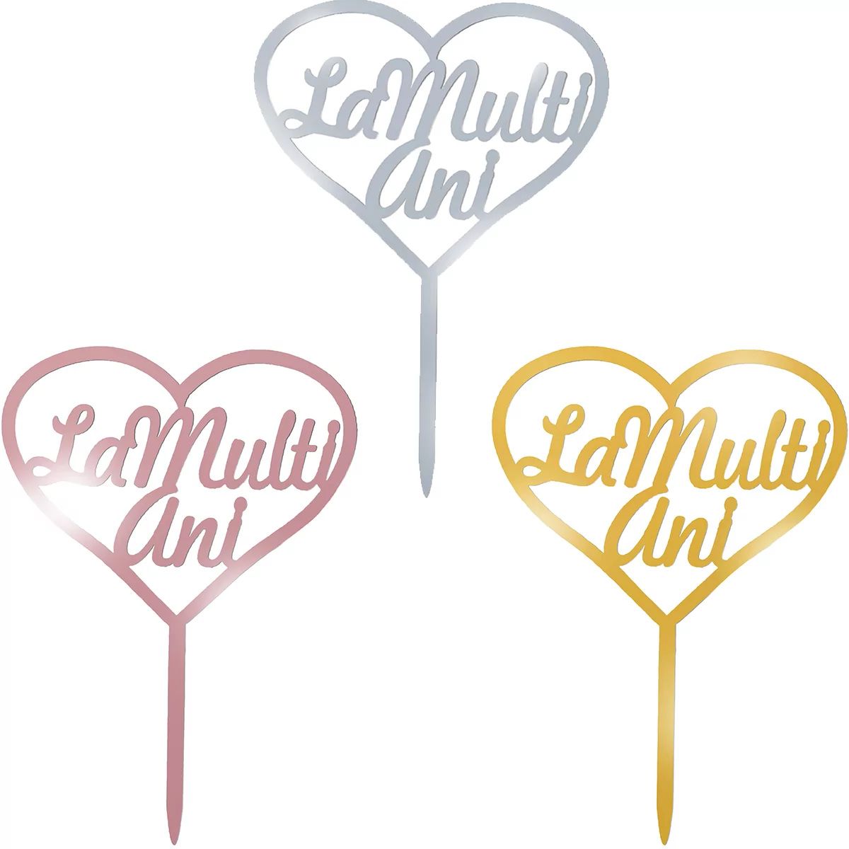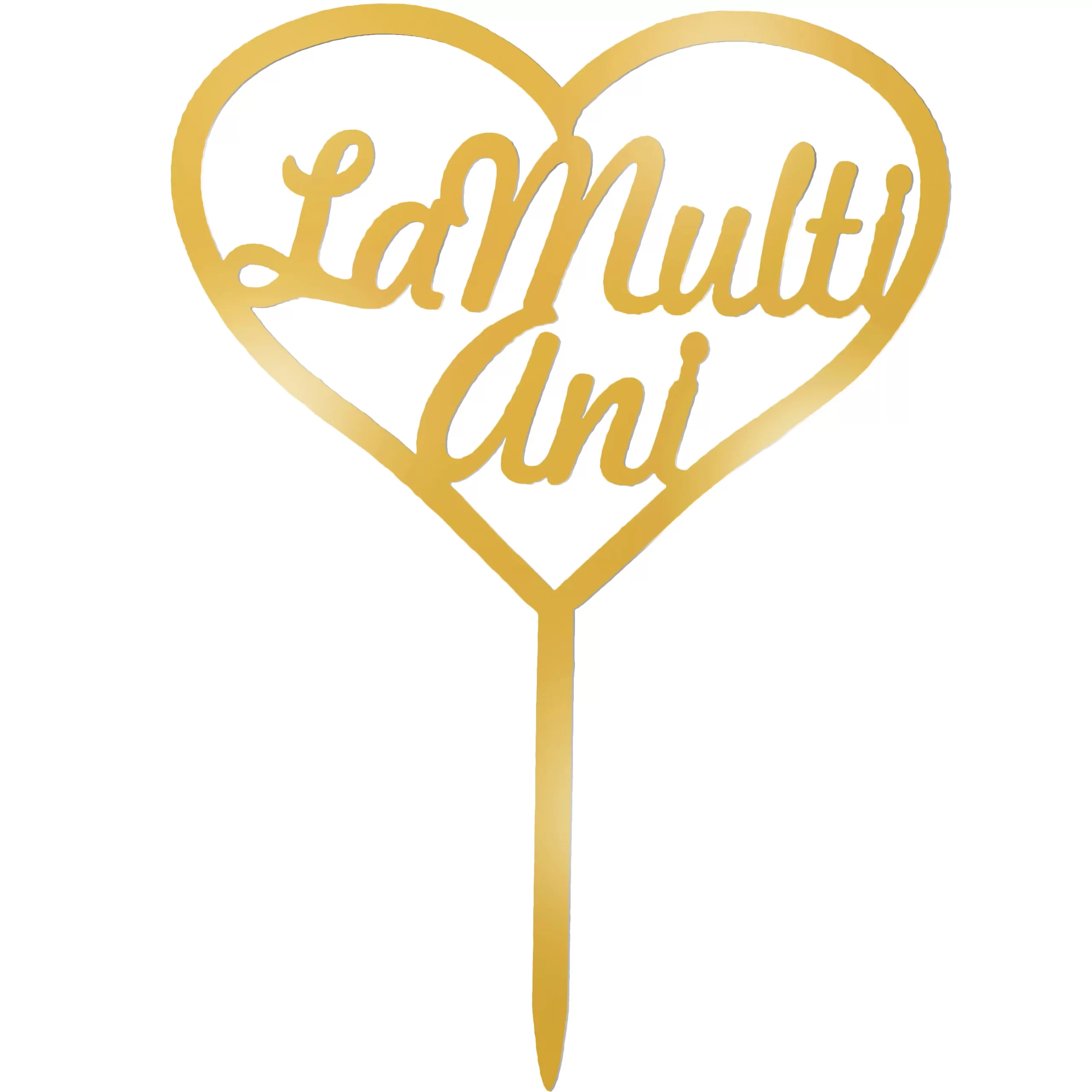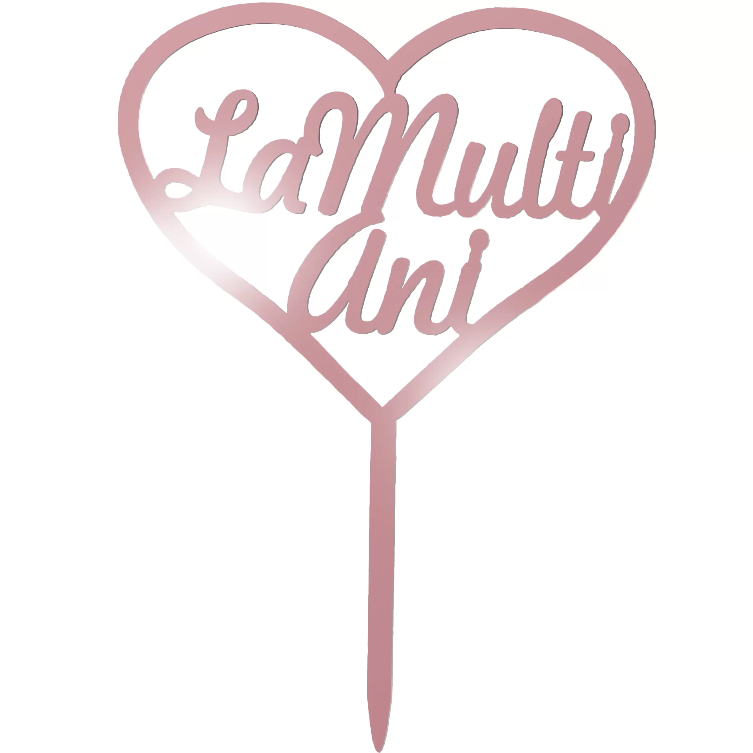 Topper tort La Multi Ani in forma de inimioara 15 cm