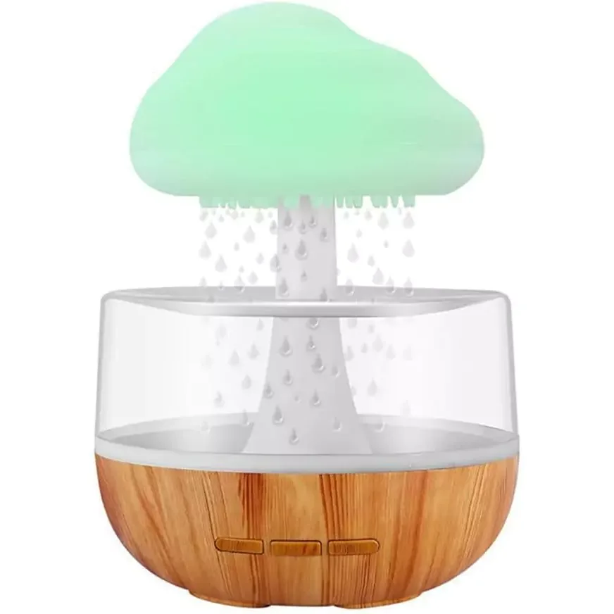Umidificator cu picurare de apă, cu functii de difuzor de aromaterapie / uleiuri esențiale si lampa de noapte cu nor de ploaie și 7 culori
